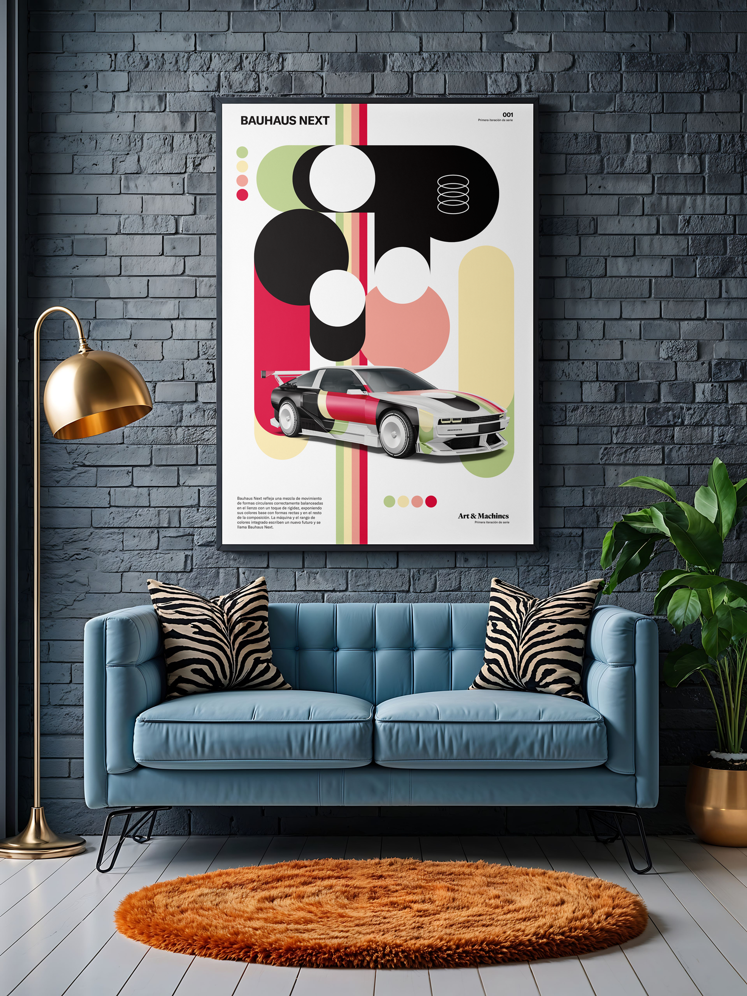 En Art & Machines, cada póster y camiseta nace de la unión perfecta entre la artesanía 3D y la libertad expresiva del estilo Bauhaus. Nuestros artistas modelan a mano los vehículos en 3D y luego los visten con composiciones geométricas llenas de ritmo y color. El resultado es una invitación a redescubrir la pasión por los motores como pura forma y emoción.