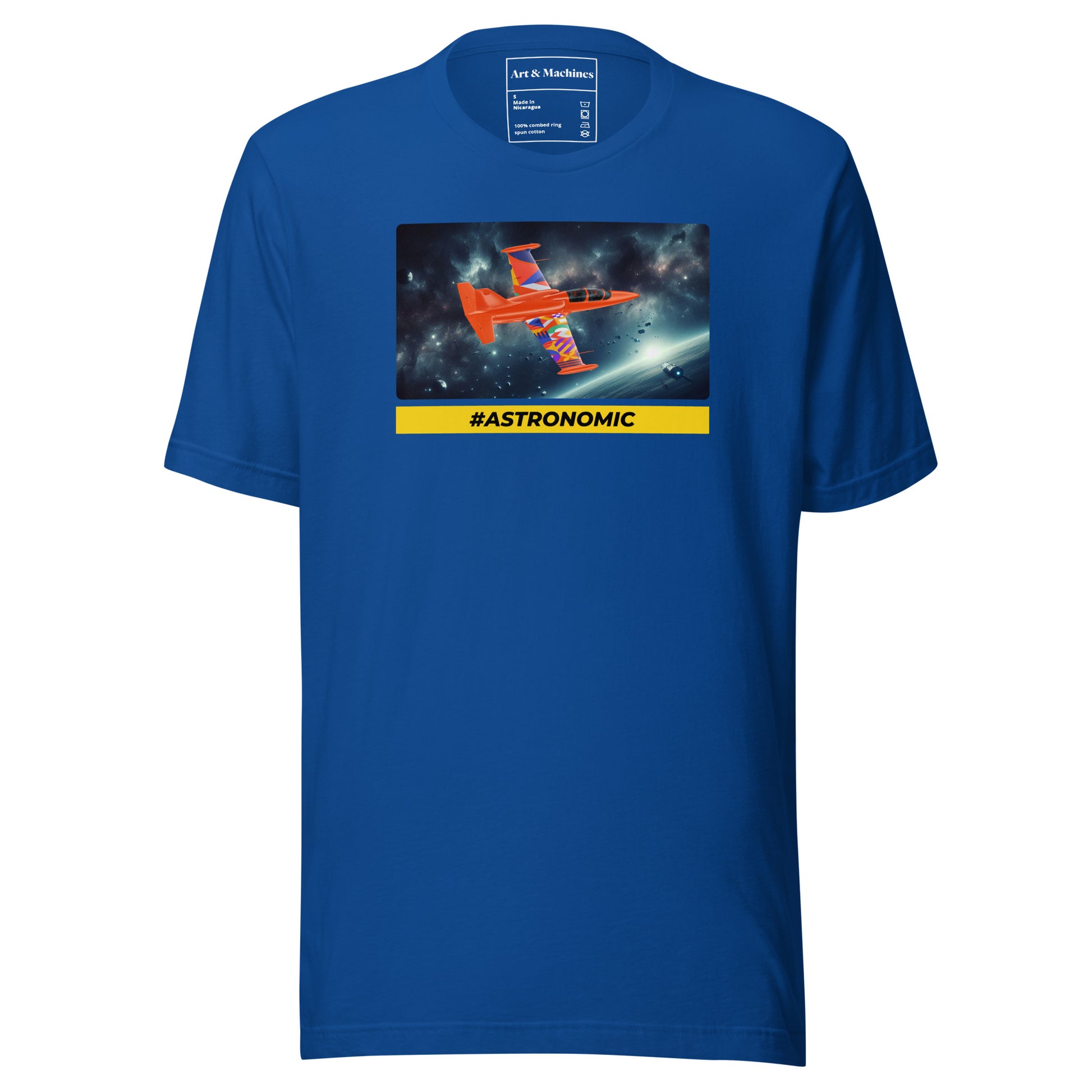 Una composición de colores cálidos y fríos, lineas rectas y ángulos cerrados, van colocados en las alas de este caza de entrenamiento con su color principal, naranja, que evoca movimiento y energía, saliendo de la estratosfera con una velocidad y actitud astronómica.