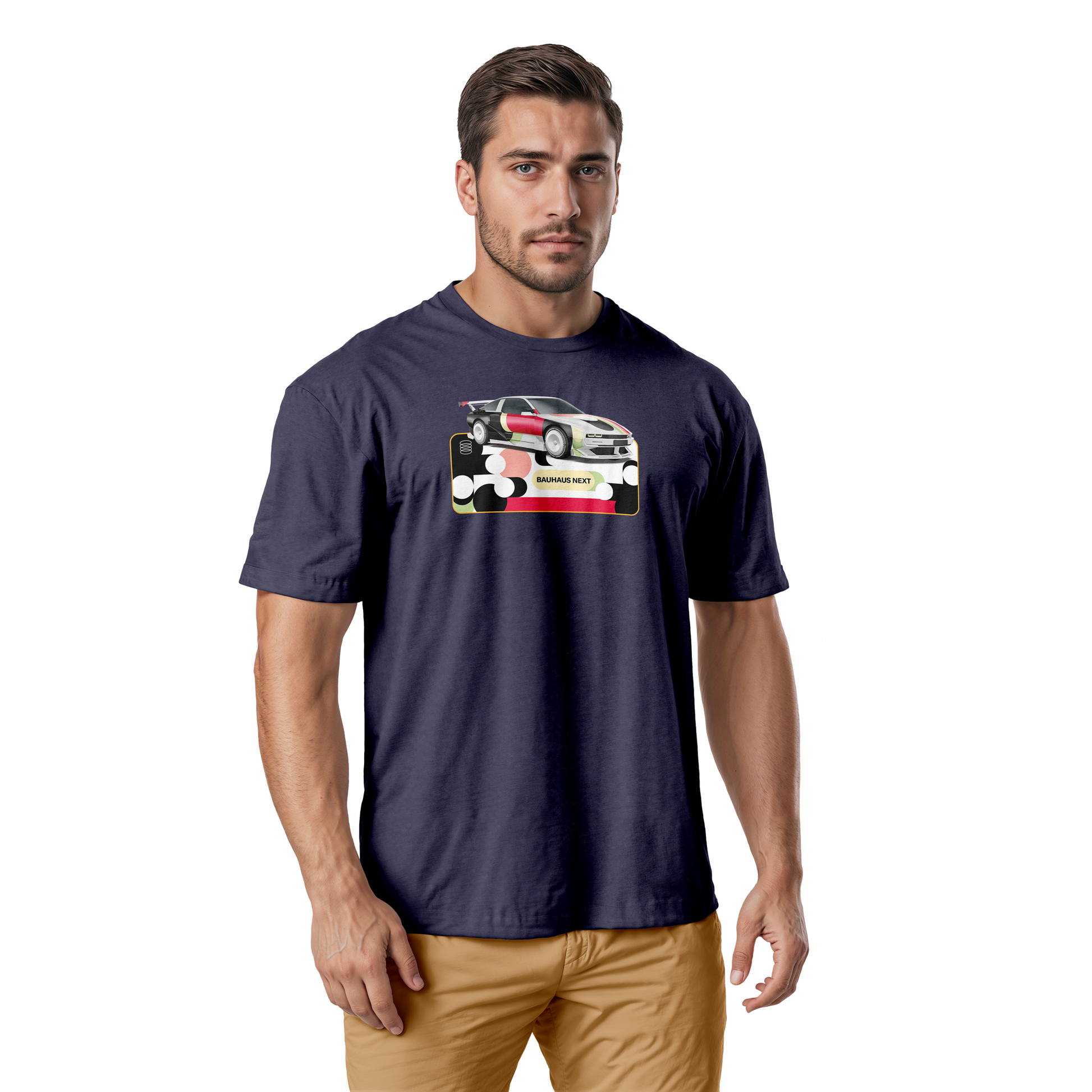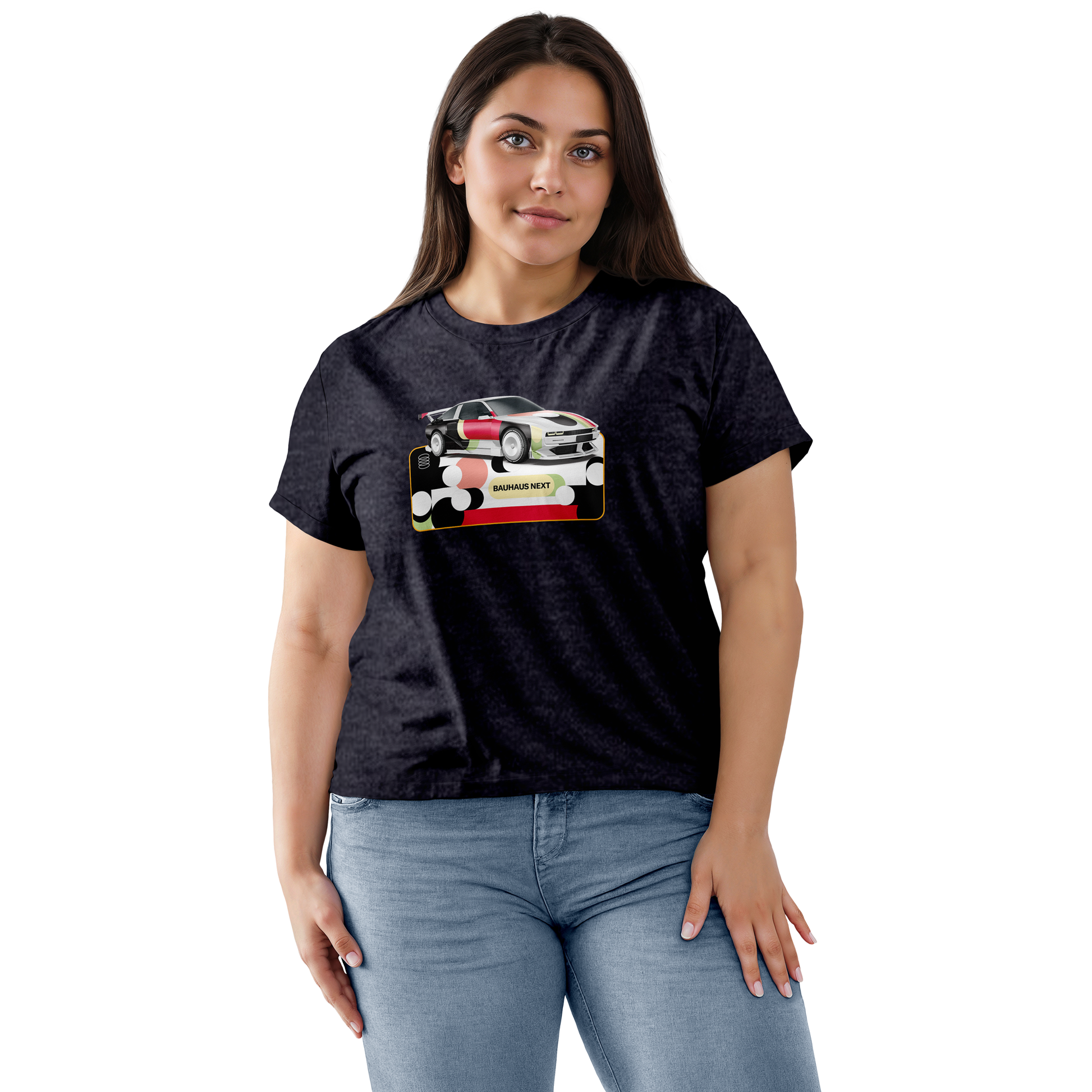 “BAUHAUS NEXT” convierte un deportivo contemporáneo en un lienzo geométrico. Círculos superpuestos y bloques de color en rojos, verdes, negros y crema se funden en un juego de contrastes que mezcla la pureza del Bauhaus con una estética futurista. Un diseño donde la velocidad se transforma en evolución creativa.